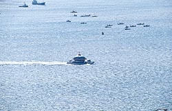 遊覧船ボイジャー 関門海峡を周遊する遊覧船で、門司港 から乗船できます。 キャビンは無動揺装置で揺れを抑えて います。 |