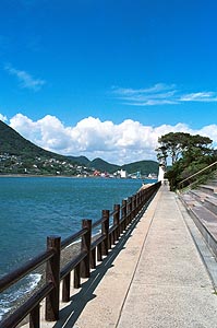 和刈神社から続く遊歩道 めかり観潮遊歩道があり、 関門海峡と対岸の下関を眺め ながら散策することができます。 |