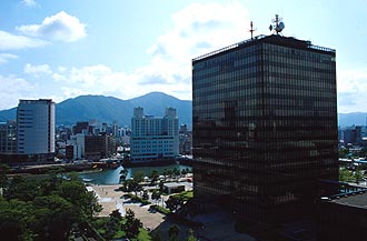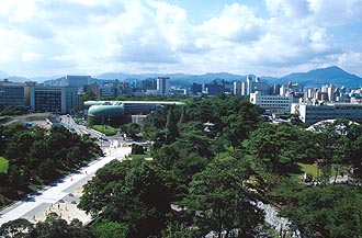 天守閣から見た風景 北九州市の町並みが一望できます、北九州市は福岡市と並ぶ九州を