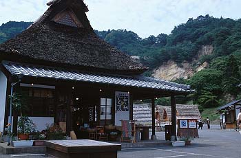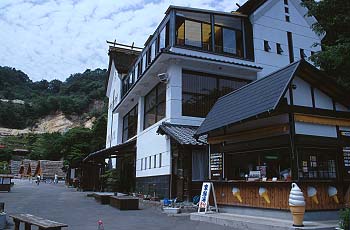 写真はそとぞれお土産屋さんと、旅館、温泉たまご