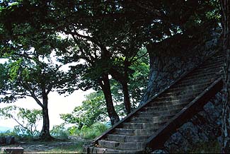 登山道は四つありす、ここは正面の櫓門からの 上り口で、登城の道といいます。 子供たちがハイキングに来り、ロードワークを やったりして賑やかです。 |