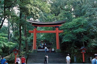 宇佐神宮の参道 鳥居は額束のない八幡鳥居と言われる独特のもの