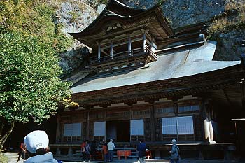 本堂 同じく岩肌にはり付いています 開山は645年のにインドの僧侶 が来たことがこの寺の始まりと されています。 以来天台宗〜臨済宗〜今の 曹洞宗と変遷してきました。 また曹洞二代伝室玄宅禅師は細川 三斉公に招かれ熊本は水前寺の 開山になっています。 熊本市水前寺公園え |